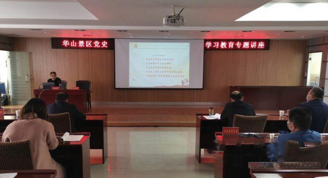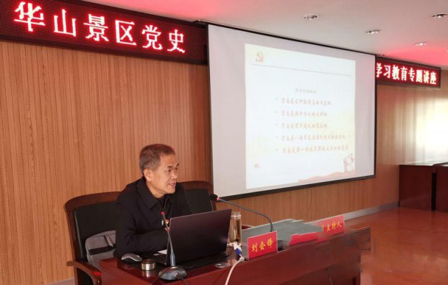 4月16日,渭南市委宣讲团成员、市委党史研究室一级调研员、beat365beat365平台官方网站客座教授刘会锋赴华山景区作渭南党史知识专题宣讲。华山景区党工委班子成员、各直属党支部全体党员,以及华旅集团党委领导,党群部负责人、所属各党支部书记、委员100余人聆听宣讲。华山景区党工委副书记、华管委常务副主任赵晓龙主持。