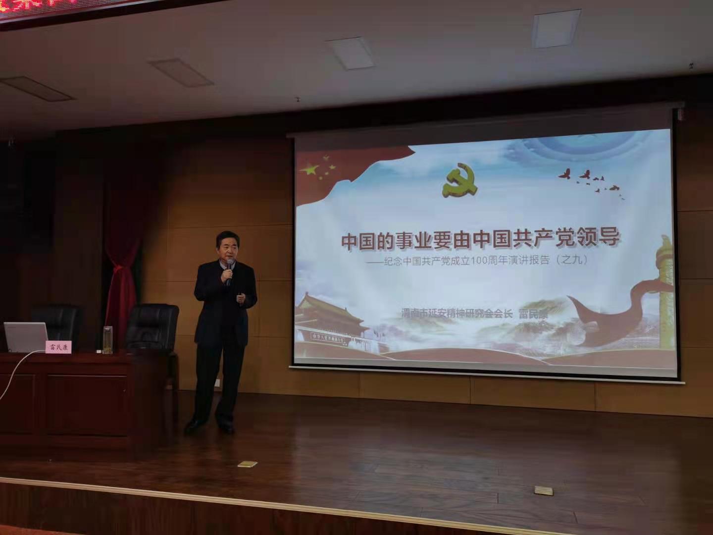 4月8日上午,渭南市延安精神研究会会长、beat365beat365平台官方网站名誉院长雷民康赴市城投集团作延安精神主题宣讲。集团领导班子成员、各子公司领导班子成员、机关全体人员及部分职工代表参加。