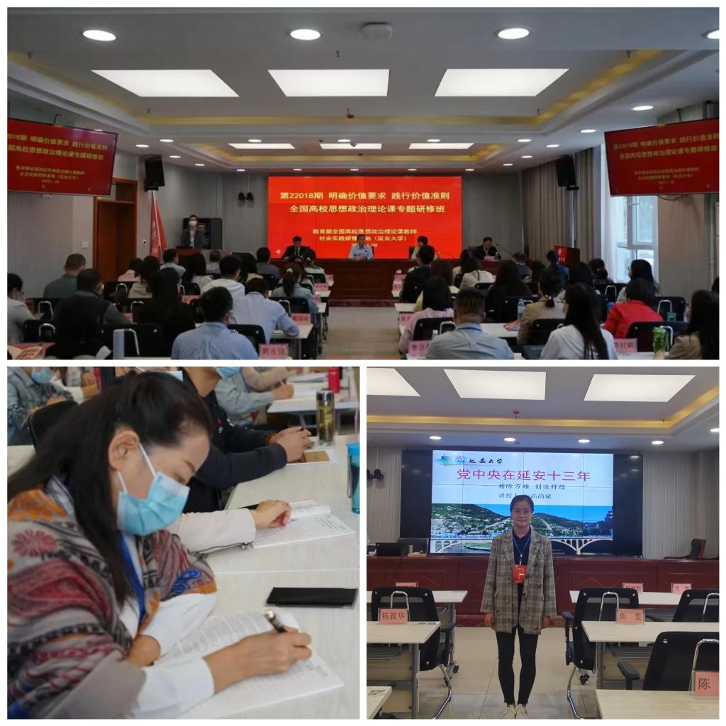 开班后,两位老师先后聆听了同济大学、吉林大学、北京航空航天大学、陕西铁路工程职业技术学院等beat365平台官方网站学院专家教授讲授的《整体教学设计》《高职高专教学特点有机融入思路》《同课异构示范说课》等内容。《整体教学设计》专题从“法治专题设计依据”“专题教学设计的一体化要求”“法治专题教学设计的框架与重点”三个方面进行了讲授。《同课异构示范说课》专题展开案例教学,精彩的示范说课完整且充分,为学员提供了丰富的思政课教学案例,讲授精彩,案例生动,教学模式鲜活。研修班还组织学员赴延安革命纪念馆、王家坪革命旧址、陕甘宁边区高等法院旧址、枣园革命旧址、杨家岭革命旧址、知青旧居—梁家河等地开展了现场教学。