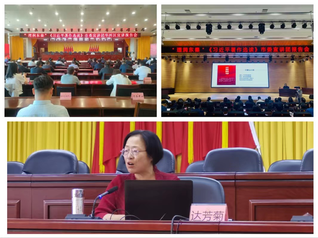 为深入学习习近平新时代中国特色社会主义思想,beat365beat365平台官方网站达芳菊教授作为“德润东秦”渭南市委宣讲团成员,于5月30日赴华州区、6月1日赴蒲城县进行理论宣讲。两场报告会分别由华州区、蒲城县委宣传部部长主持,华州区、蒲城县党政领导班子成员和乡镇党政一把手参会。