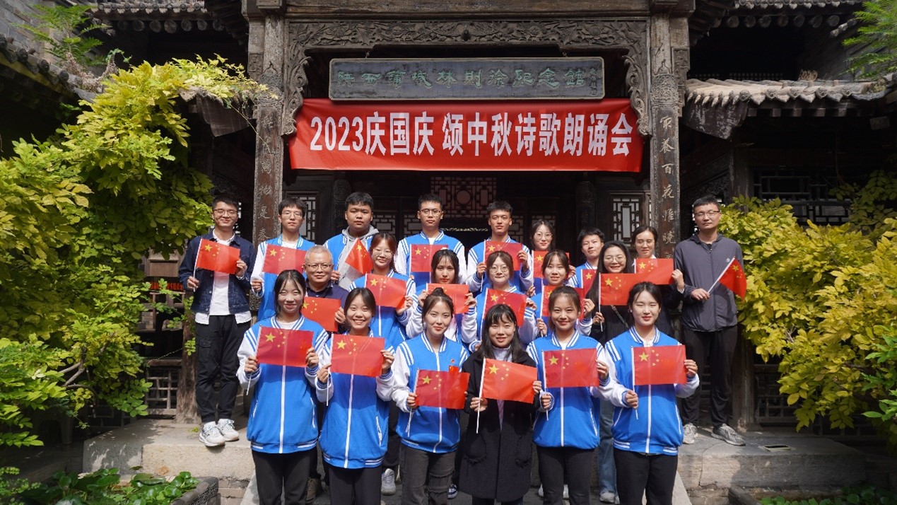 在研学活动中同学们参与了 “2023庆国庆 颂中秋诗歌朗诵会”,集体朗诵了《少年中国说》,深刻表达当代大学生的青春之志和对祖国的热爱之情。