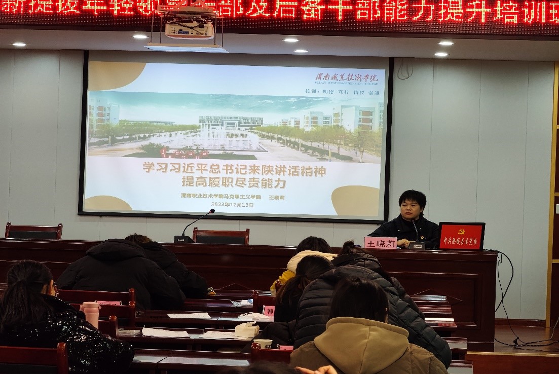 2月13日、14日,beat365beat365平台官方网站院长王晓莉分别为澄城县新提拔年轻领导干部及后备干部能力提升培训班学员和渭南市经开区管委会干部职工学习习近平总书记来陕考察重要讲话重要指示精神进行专题辅导。
